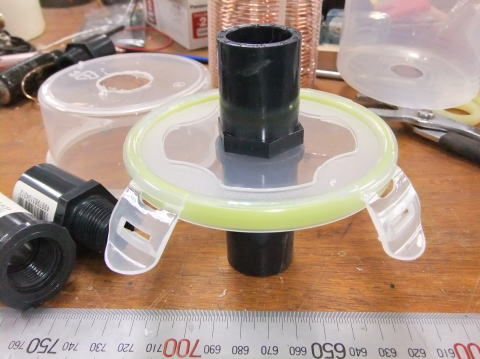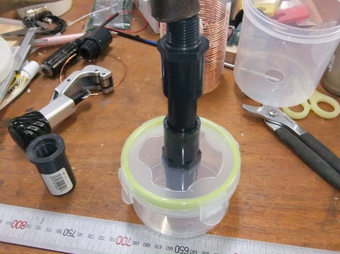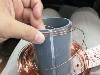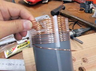 コイルから先端までの製作 ※写真の一部に、塩ビ管の色が異なるものがありますが、現在は黒い塩ビ管を使用しています。
