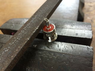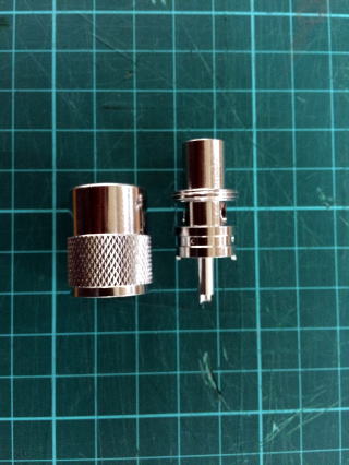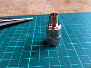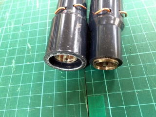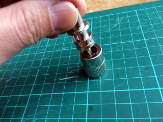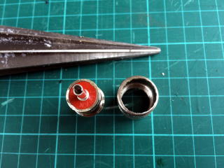 5D用のM型コネクターのツメ部分を削り取ります。