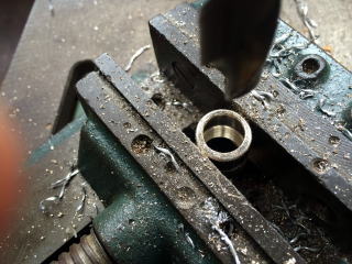 ボール盤を使って、穴を広げます。
