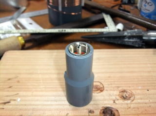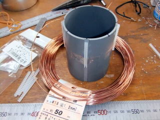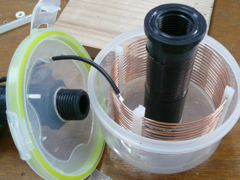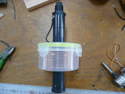 コイルから先端までの製作 ※写真の一部に、塩ビ管の色が異なるものがありますが、現在は黒い塩ビ管を使用しています。