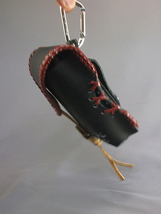 カラビナフックを持ち上げてみるとこんな感じ。腰にぶら下げておしゃれに使いこなしてください。 |