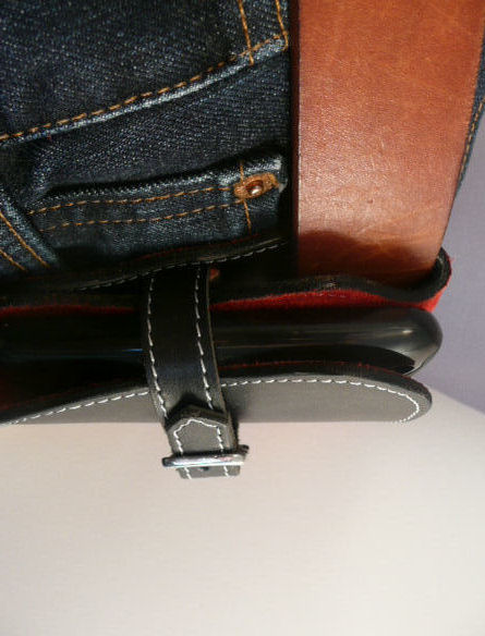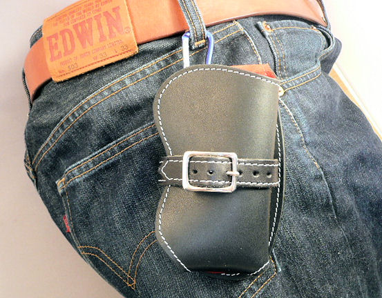 製作者自身では、このようにベルトを通して使うことの方が多いです。
